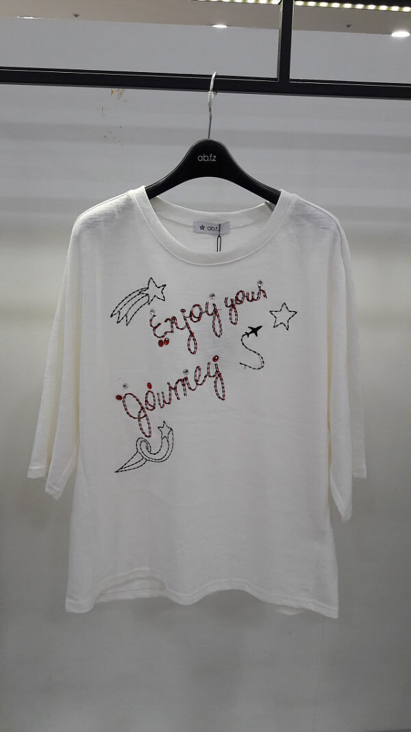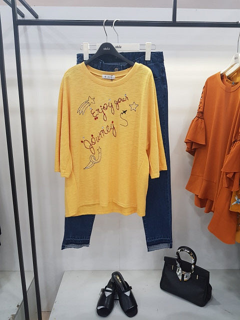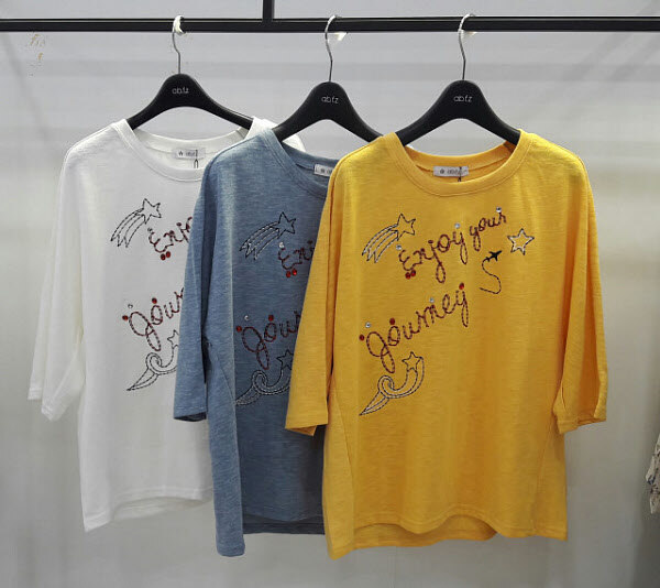 편하게 입기 좋은 티셔츠입니다.칠부 기장에 러블리한 루즈핏이라 청바지, 반바지 스커트에 두루두루 어울립니다.