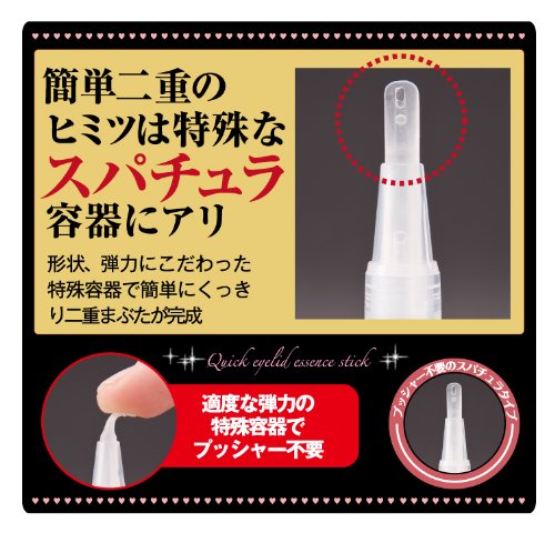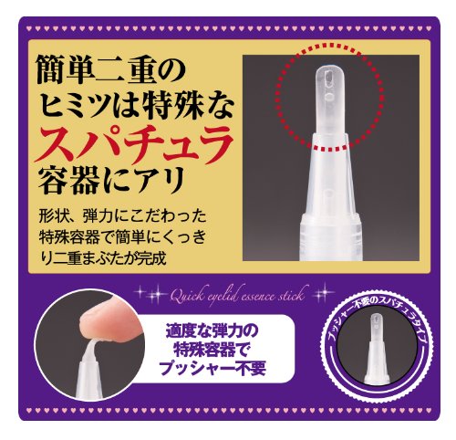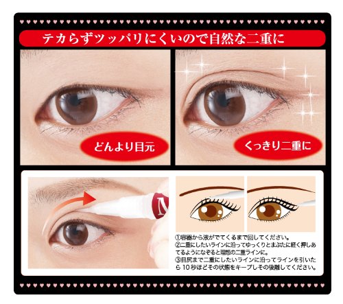容器から液が出てくるまで回してください。 二重にしたいラインに沿ってゆっくりと先端部をまぶたに軽く押すようにご使用ください。 目尻までラインを引いたら10秒ほどその状態をキープし、その後、離してください。 【落とし方】 洗顔でやさしくこするように落としてください。落ちにくい場合は、濡らしたコットン等をまぶたにしばらく当てた後、洗顔してください。 |