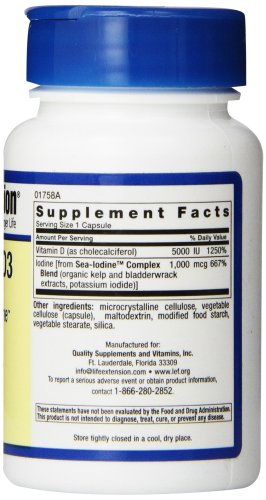 -. Title : Life Extension Dietary Capsules, Vitamin D3 5000 IU with sea Iodine, 60 Count