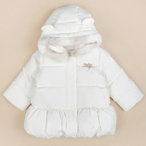 깨끗하면서 사랑스러운 아이보리 칼라의 화섬소재의 오리털점퍼입니다.