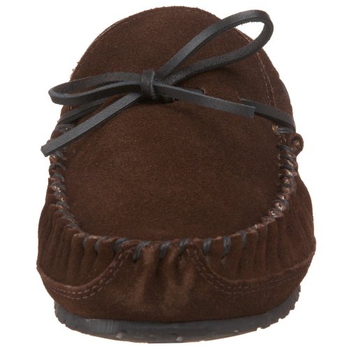-. Feature : Indoor/outdoor slipper in classic moccasin silhouette featuring around-the-collar lacing and soft pile fleece lining / Whipstitched toe