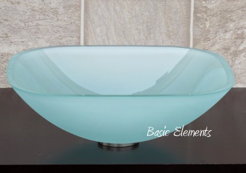 1/2 Thick Bathroom Frosted Square Glass Vessel Vanity Sink with free drain/ring