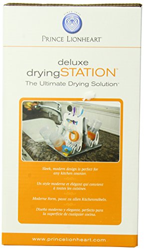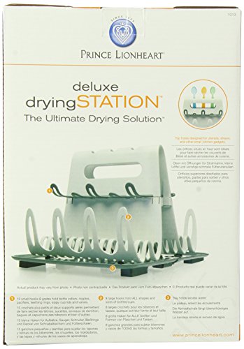 The Prince Lionheart deluxe dryingSTATION is the ultimate drying solution. Prince Lionheart's top of the line drying station in a sleek modern design that is perfect for any kitchen counter. The deluxe drying station accommodates feeding accessories, sippy cups, teething toys and up to 16 bottles. It has eight large hooks to hold all shape and size of bottles and cups. The ten small hooks and grate holds bottle collars, nipples, pacifiers, teething rings, sippy cup lids and valves. Top holes are designed for utensils, straws and other small kitchen gadgets.