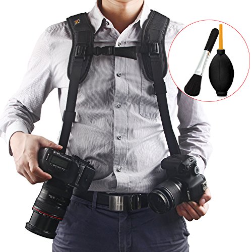 ALLOWS CARRY 2 CAMERAS AND RAPIDLY SWITCH BETWEEN THEM: Allows you to carry 2 Cameras at the same time and switch between them rapidly. Quick Release Dual Shoulder Camera Strap harness also can be SEPARTED into 2 single straps