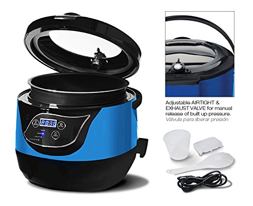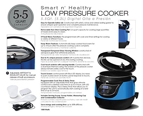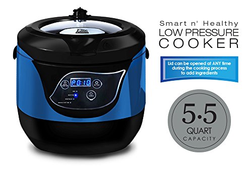 Elite Platinum EPC-55BL Maxi-Matic 5.5 Quart Electric Digital Low Pressure Cooker, Blue (Stainless Steel)