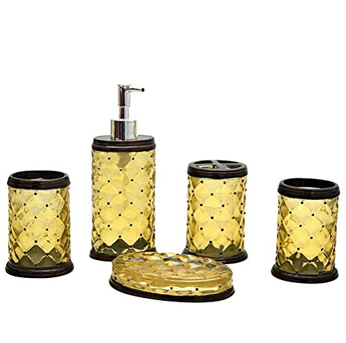 Hot San Resin 5 Pieces Bathroom Accessory Collection Set With Transparent Golden With Black Spots Design For Home