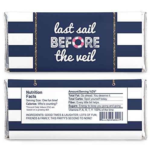 Last Sail Before The Veil - Candy Bar Wrappers Nautical Bridal Shower & Bachelorette Party Favors - Set of 24 wrappers & foils (Candy bars not included)