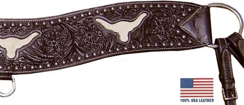 Studio : Royal International Publisher : Royal International Binding : Misc. Product Description Just as handsome as the horse who will be wearing it. This tripper is made from American leather hand tooled with a gorgeous floral design and is inlaid with cow hair in a stunning longhorn design. 0