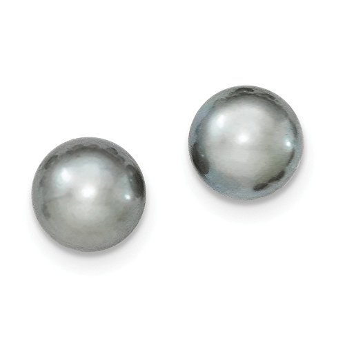 Solid 925 Sterling Silver 10-11mm Grey FW Cultured Button Simulated Pearl Stud Earrings