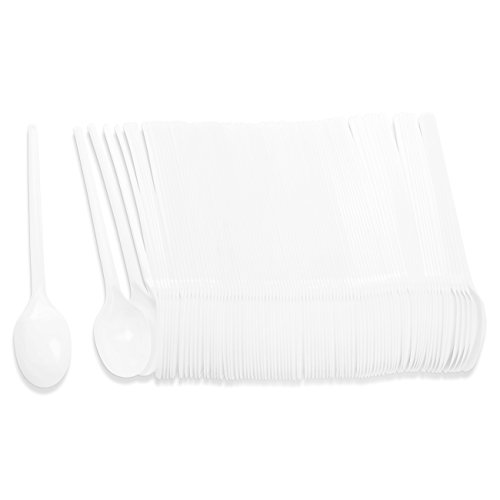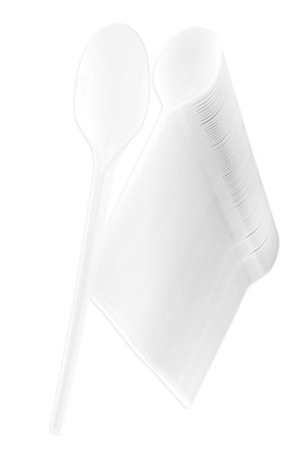 Pack of 100 Plastic Tea Spoons - Disposable, Lightweight, BPA-Free Tea Spoons for Parties, Gatherings, Lunch Boxes, White - 6.6 x 1.3 inches