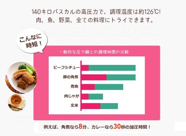 | 140kPaの超高圧で省エネ、時短ができる圧力鍋!! |