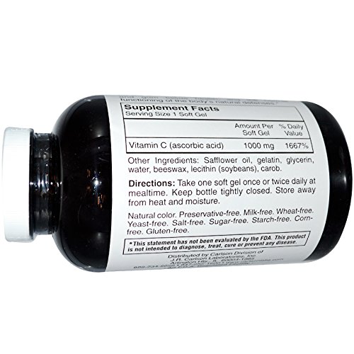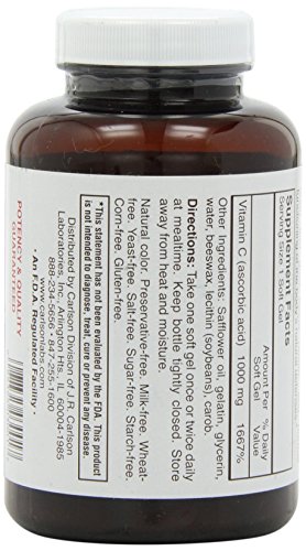 Studio : Carlson Labs Publisher : Carlson Labs Binding : Health and Beauty Product Description C Gel 1000mg 100 SoftgelProduct Description Vitamin C is an essential antioxidant nutrient. It is necessary for the building of collagen, maintaining teeth and gum tissue health, and the normal functioning of the body's natural defenses. C-Gel provides Vitamin C (Ascorbic Acid) in easy-to-swallow softgels.