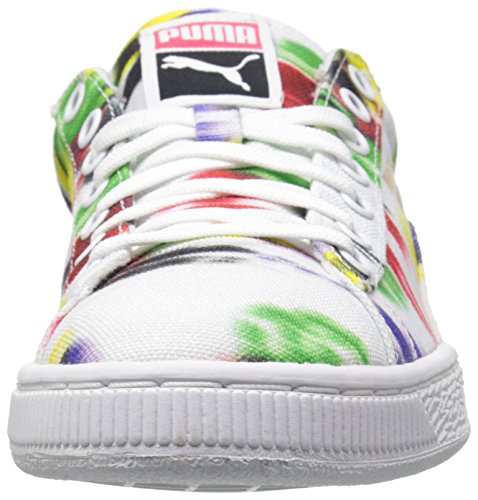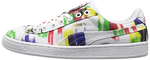 Originating from the puma archive back in 1971, the basket was the leather answer to the suede. However this version features a full canvas upper perfectly crafted for the summer. It's singular but yet clean and simple design propelled this shoe into the sneaker hall of fame. Featuring a blurred color full graphic inspired by the olympics for this summer.