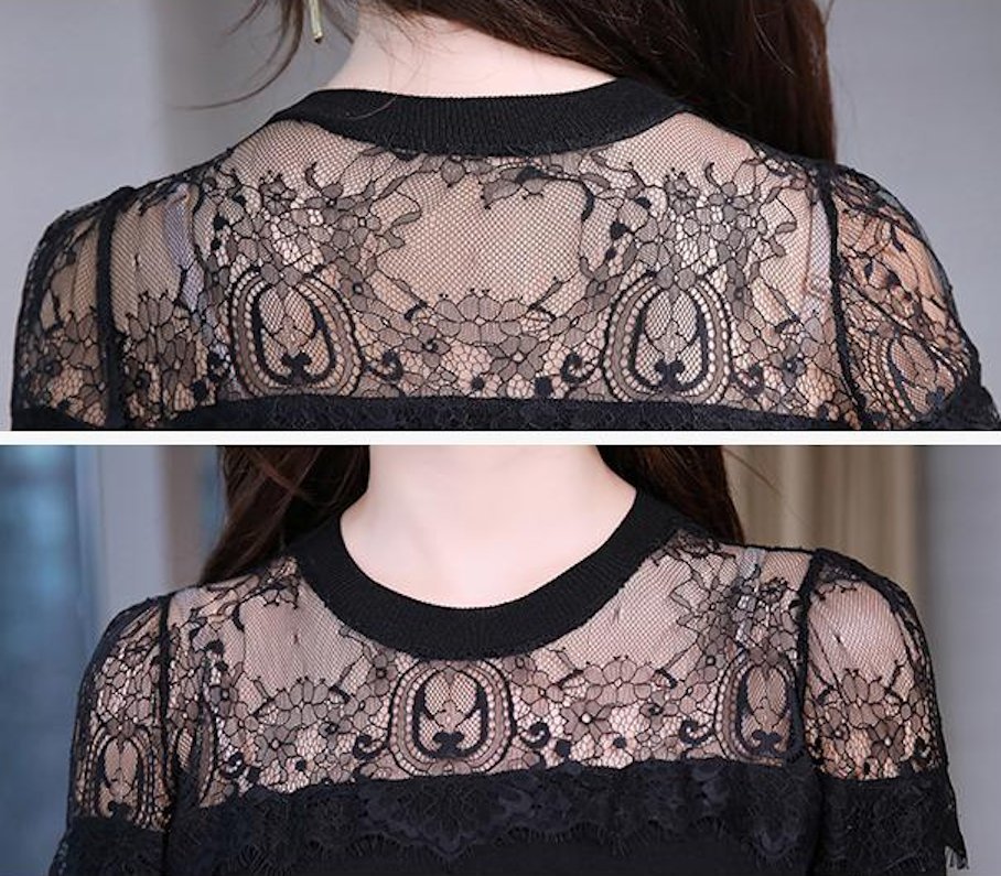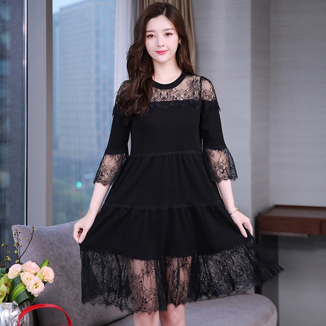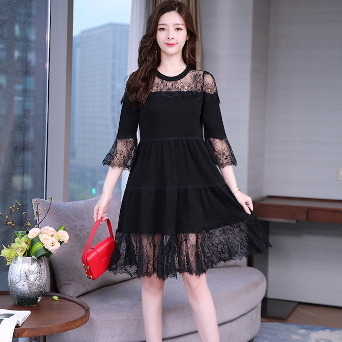 レース装飾で程よい透け感の大人可愛いワンピースドレス。