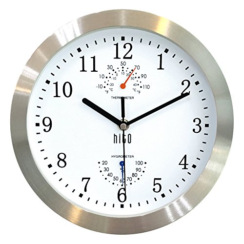 HITO Silent Non-ticking Wall Clock- Metal Frame Glass Cover, 10 inches