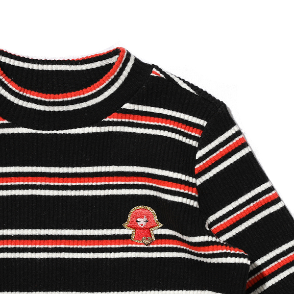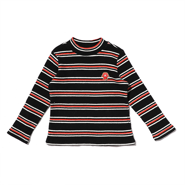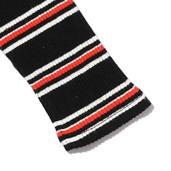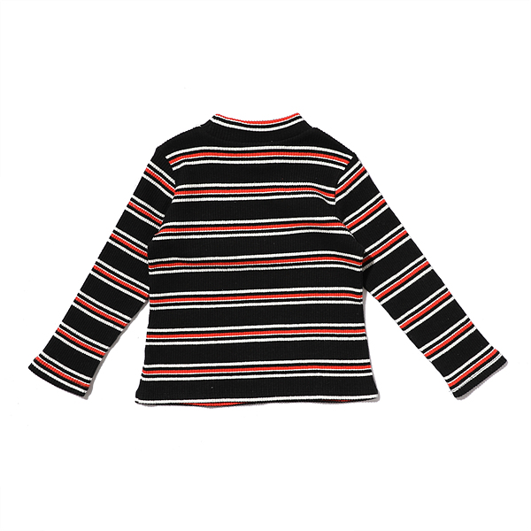 -블랙, 오렌지 의 멀티 스트라이프로 골지 소재 반목티입니다.