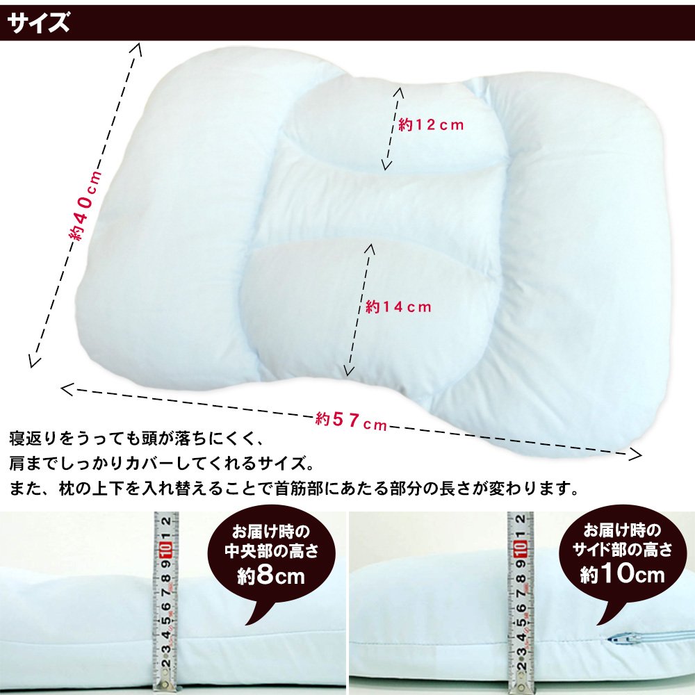 In general, even if you turn over, your head does not fall off, and the pillow size that covers firmly up to the shoulder is said to be over 60 cm in width and over 40 cm in depth.