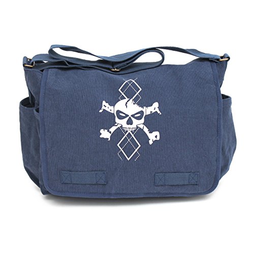 Product Description Cool Canvas diaper bag with our signature Argyle Skull in white. Designed in the USA by Crazy Baby Clothing. It has an enormous main compartment that can fit your dippers, wet wipes, changing mat, several bottles and cloths. The is an inside zipper pouch for pacifiers, car keys and wallet. The bag has two outside and two inside pockets for bottles dippers and wipes. 2" wide adjustable shoulder strap with Brass hardware, Bag Dimensions 15"x11"x6" 0