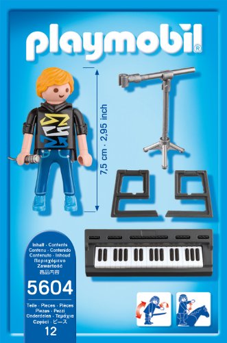 -. Binding : Toy -. Brand : PLAYMOBIL® -. Department : baby-girls -. EAN : 4008789056047 -. Feature : Harmonize with the band with the Playmobil Pop Stars Keyboarder / Playmobil is the largest toy manufacturer in Germany / Figures can bend, sit, stand and turn their heads / Encourages children to explore and learn while having fun / Includes one figure, keyboard, microphone and microphone stand -. IsAdultProduct : 0 -. ItemPartNumber : 5604 -. Label : Playmobil -. Manufacturer : Playmobil -. Model : 5604 -. MPN : 5604 -. PackageQuantity : 1 -. PartNumber : 5604 -. ProductGroup : Toy -. ProductTypeName : TOYS_AND_GAMES -. Publisher : Playmobil -. ReleaseDate : 2013-09-01 -. Studio : Playmobil -. Title : PLAYMOBIL Pop Stars Keyboarder -. UPC : 797770963979 -. Warranty : 30 day warranty against manufacturer defects