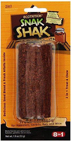 - 100 percent chewable Snak Shak log stuffed with fresh alfalfa and irresistible seed blends