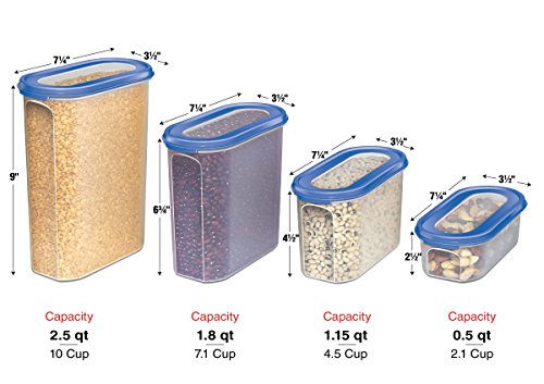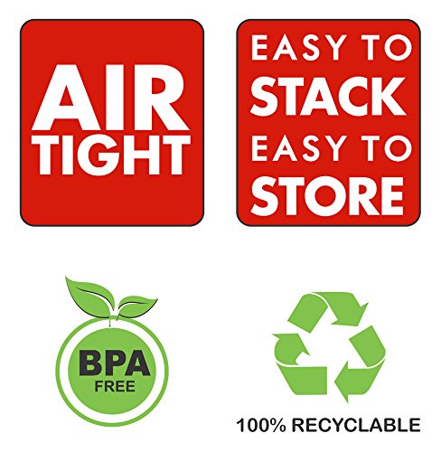 ★ AIR TIGHT - Lids Fit Securely To Keep Foods Fresh, They FORM A TIGHT SEAL For Extended Freshness. Perfect for Pasta, Snacks, Crackers, Dried Beans, Coffee, Tea, Nuts, Baking Ingredients and More. Containers Are Built With a STRONG & DURABLE BPA Free Plastic Material. Dishwasher & Microwave Safe (lid not recommended) – Refrigerator & Freezer Safe. SET INCLUDES 1-- 2.5 qt. 2- 1.8 qt. 3- 1.15 qt. 4- .5 qt.
