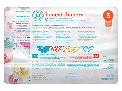 ReleaseDate : 2017-06-15 Studio : The Honest Company Publisher : The Honest Company Binding : Health and Beauty Product Description Our super-absorbent, diapers ? made with plant-derived and sustainable materials* ? are ultra soft, hypoallergenic and made without chlorine or bleach processing and additives (like synthetic fragrances, lotions, and latex). Oh, and did we mention how adorable they are? 0
