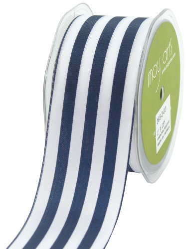 May Arts 2-Inch Wide Ribbon, Navy and White Stripe