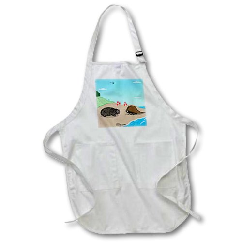 3dRose apr_110856_4 Porcupine Meets Horseshoe Crab Love At First Sight Full Length Apron, 22 by 30", Black, with Pockets
