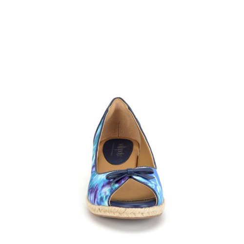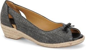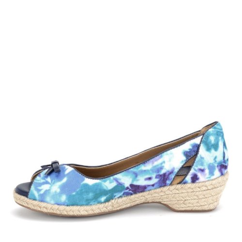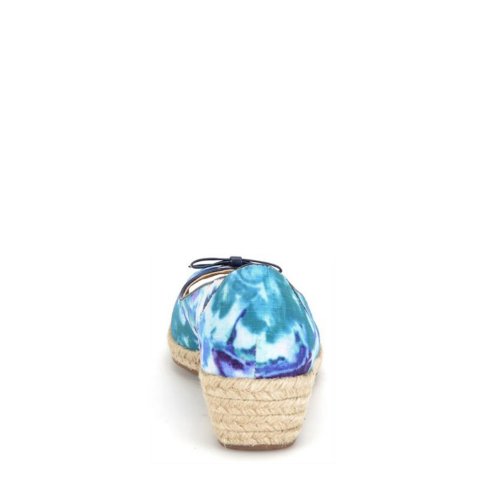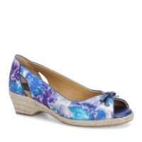 Heel Height: Approx. 1 1/2'' Tall. A refreshing peep toe espadrille. Offered in canvas or floral fabric. Nappa bow and trim. Exclusive Pillowtop comfort footbed. Jute-wrapped wedge.