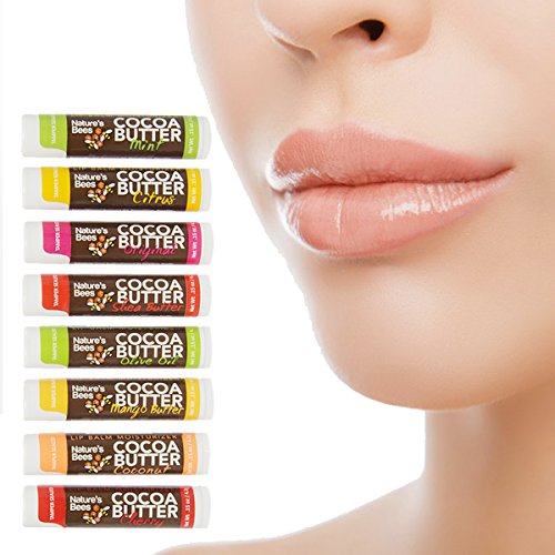 - Nature’s Bees Cocoa Butter Natural Lip Balms Set In 8 Different Varieties, Choose Quantity From Dropdown Menu (8pk, 24pk in single display box or 96pk lip balm bulk in 4 display boxes) New With Sealed Caps