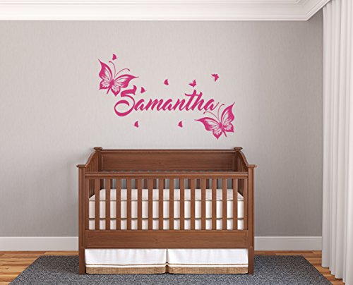 Custom Name Beautiful Butterflies - Prime Series - Baby Girl - Nursery Wall Decal For Baby Room Decorations - Mural Wall Decal Sticker For Home Children's Bedroom(MM16) (Wide 32"x20" Height)