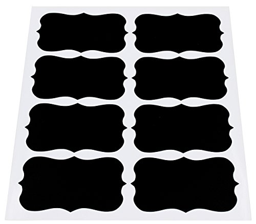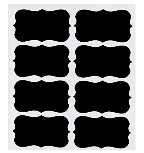 - Feature : A total of 48PCS black chalkboard labels, each 2 inches by 3.5 inches. All in fancy rectangle style / Use immediately from the package - just peel off the backing and stick them on! Labels can be readjusted in the first 20 minutes after you apply them so they look perfect. Wipe clean with a damp cloth to change what you have written. The labels themselves are waterproof, so they won't wash off, even in the dishwasher / Use to label mason, ball or other canning and spice jars, storage containers, bins, boxes, glasses, anything with a smooth finish / Made of strong vinyl plastic with a quality matte finish, provides the perfect surface for writing with any color chalk or a chalk ink pen. / These are not glorified stickers cut out of cheap contact paper so they won't rip or tear
