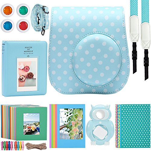 Katia Mini 8 Film Camera Accessories Bundles Set for Fujifilm Instax Mini 8 Instant Film Camera with Camera Case/Album/Selfie Len/Frames/Stickers ETC -set11 (Blue)