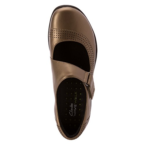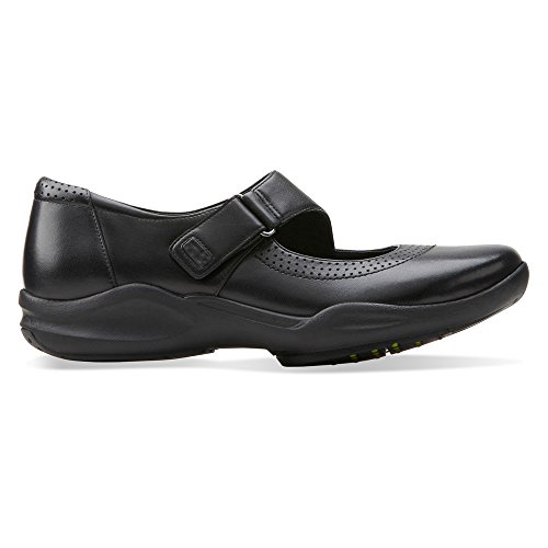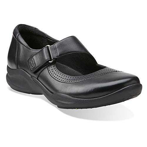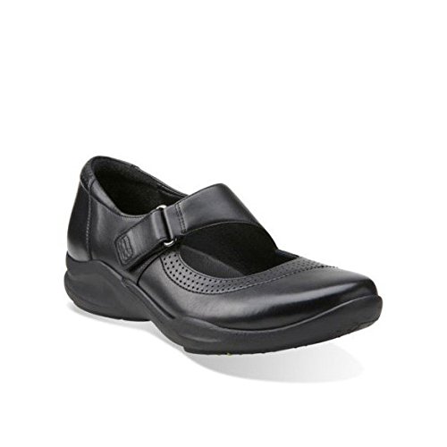 Studio : Clarks Publisher : Clarks Binding : Shoes Product Description A sporty chic mary jane that out-walks the rest. crafted of supple black leather with clarks wave walk™ technology, it features an innovative curved rocker sole that conserves energy, absorbs shock, and cushions the joints to enhance the walking experience. the adjustable buckled strap, soft leather linings, removable ortholite® molded footbed, and rubber outsoles surround the foot in comfort. 0