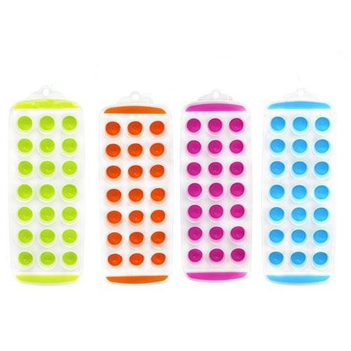 Set of 4 - 11'' Easy push Pop Out round mini Ice Cube Trays with flexible silicone bottom