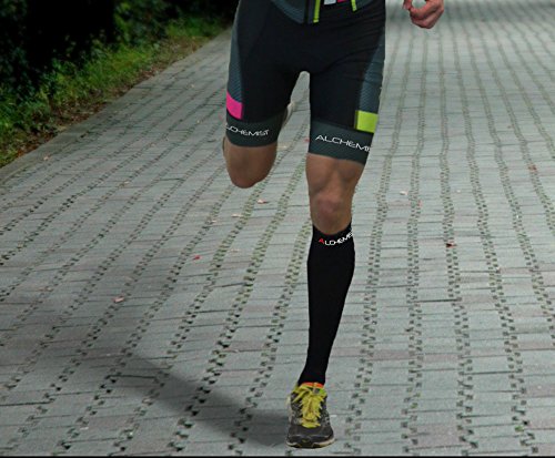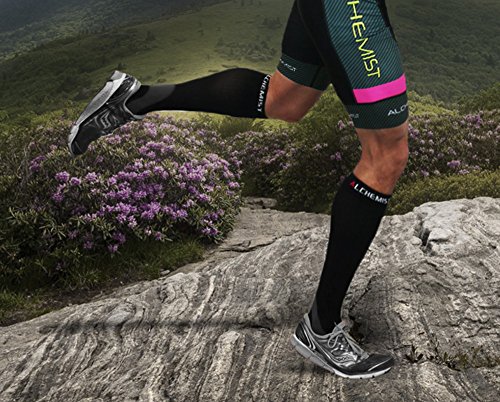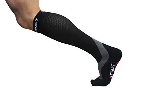 - Title : Alchemist RX Compression Socks (Men, Women) - For Running, Cycling, Basketball, Training, Flight Travel and Recovery of Swollen Legs and Feet, Shin Splints - Black Knee High Stockings, LARGE