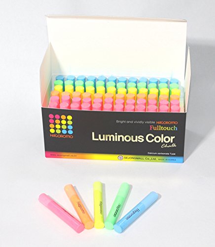 Hagoromo Fulltouch Luminous 5-Color Mix Chalk 1Box (72pcs) Pink, Yellow , Blue, Yellow Green, Orange