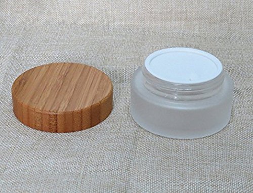 VNDEFUL 1pcs 50g 50ml Environmental Bamboo Lid Frosted Glass Bottle Cream Jars Empty Cosmetic Comtainer