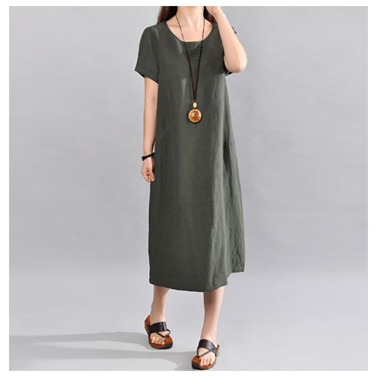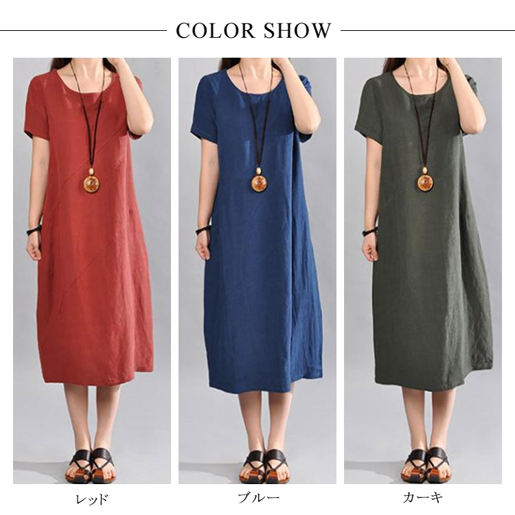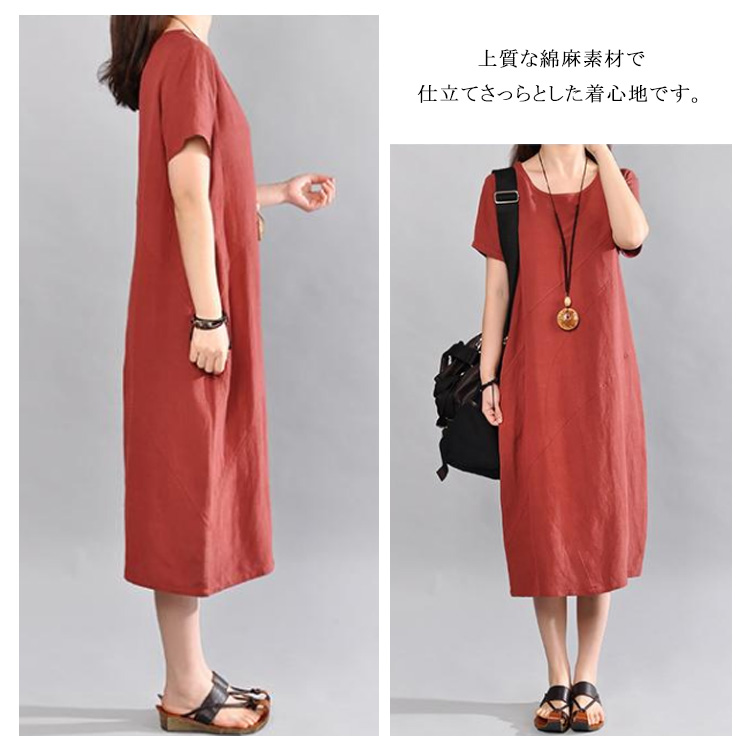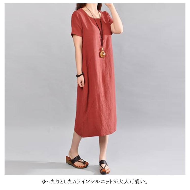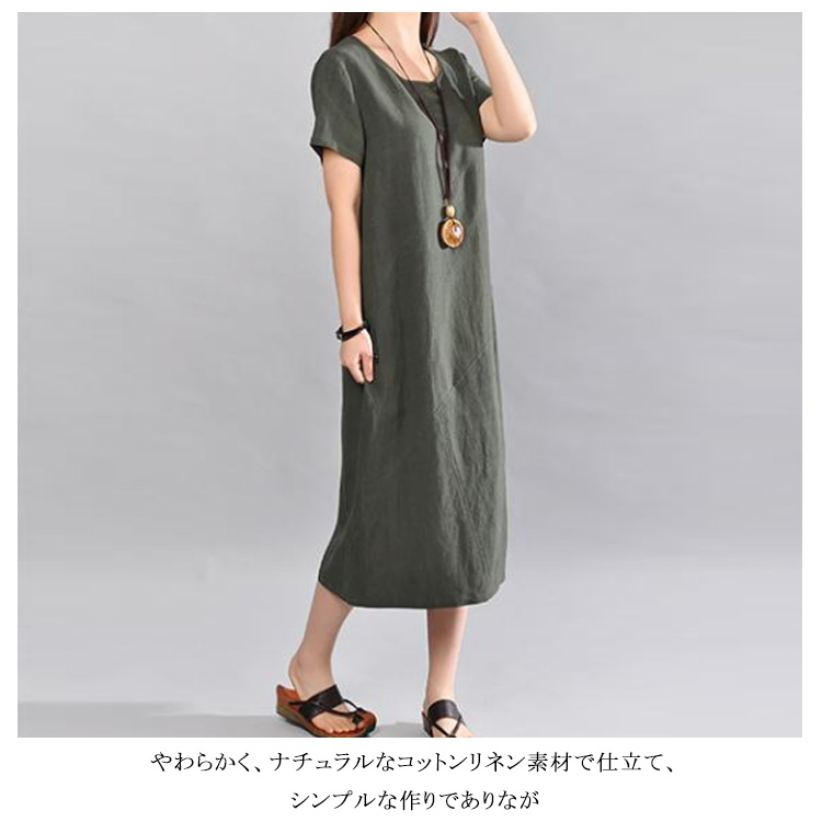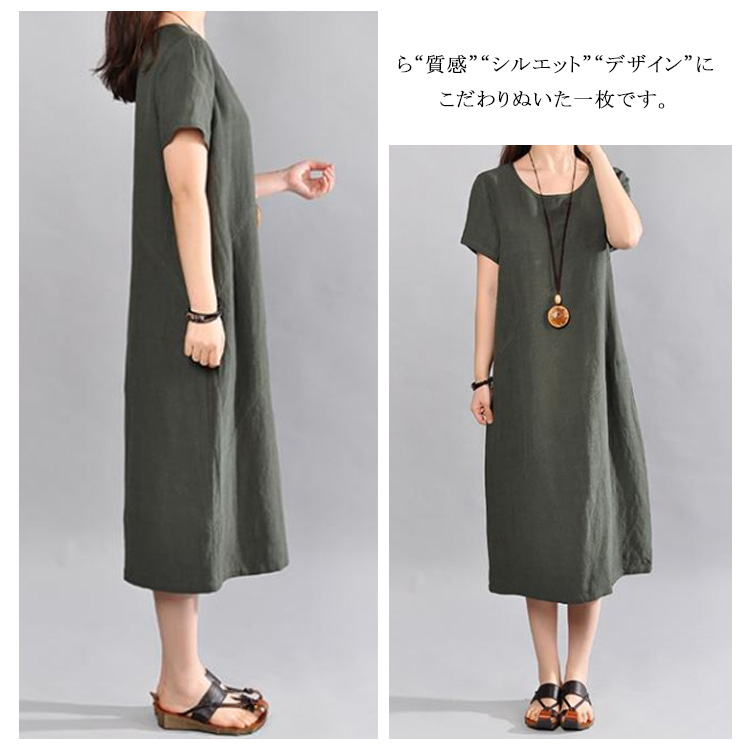 | 大人ナチュラルな半袖ロングワンピース。ゆったりとしたAラインシルエットが大人可愛い。上質な綿麻素材で仕立てさっらとした着心地です。程度よく開いたラウンドネックは小物などにも映えやすい。体型を気にぜず、どんな方も愛用されるのがPoint!やわらかく、ナチュラルなコットンリネン素材で仕立て、シンプルな作りでありながら“質感”“シルエット”“デザイン”にこだわりぬいた一枚です。 | |