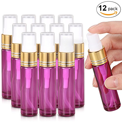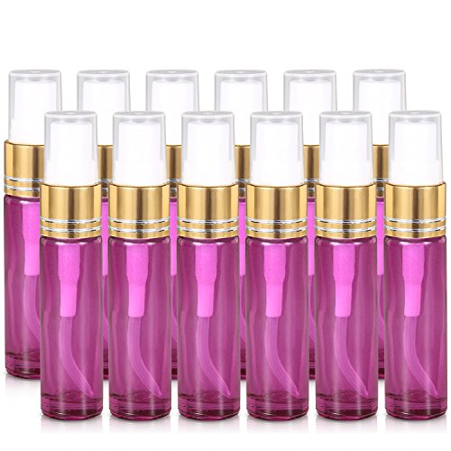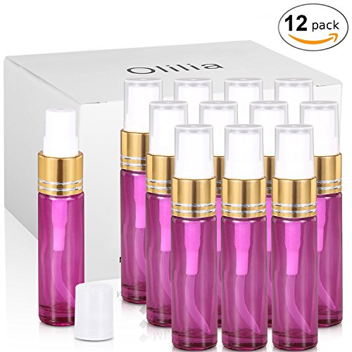 Olilia Glass Spray Bottles with Gold Fine Mist Sprayer 12 Pack of 10ml (1/3oz) - Refillable Empty Bottles Perfect for Essential Oils (Violet)