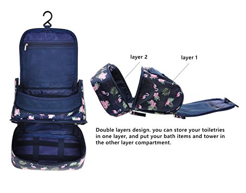 Double layers design. you can store your toiletries in one layer, and put your bath items and tower in the other layer compartment.
