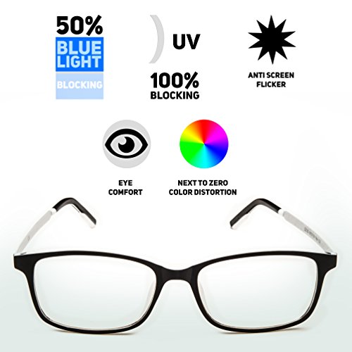 -. Feature : ✅ NOTICE THE DIFFERENCE IN DAYS - With these glasses, you'll start to notice better screen viewing and greater clarity after just a few days of wearing them / ✅ NO MORE TIRED EYES - Reduce eye strain, eye fatigue and sensitivity to light during long computer sessions. Allow your eyes to blink and function naturally. Great for office workers or anyone who has to look at a screen all day. Designed for all day comfort with a durable yet flexible frame. Whether you're catching up on emails after a long day at work, or burning the midnight oil to finish a project - protect your eyes from excessive levels of blue light / ✅ WORKS WITH ALL SCREEN TYPES - The average American now spends over 7 hours a day looking at a screen. Whether it's laptops, desktops, tablets or smartphones - our glasses help reduce harmful blue light that can causes eye issues and prevent ideal levels of sleep. Also effective against sensitivity to fluorescent lights / ✅ NO COLOR DISTORTION - Unlike other glasses, Spectrum lenses don't distort screen colors or have a harsh yellow tint. Our glasses only block the harmful 50% of blue light, while letting the other, harmless 50% through, giving you get the optimal viewing experience without any color distortion / ✅ IMPROVED VIEWING EXPERIENCE OR YOUR MONEY BACK - We're so confident that our glasses will give you better screen viewing that we offer a full 90 day money back guarantee. Your purchase is completely RISK FREE. If for any reason you're not completely satisfied, simply contact us for a full refund - no questions asked