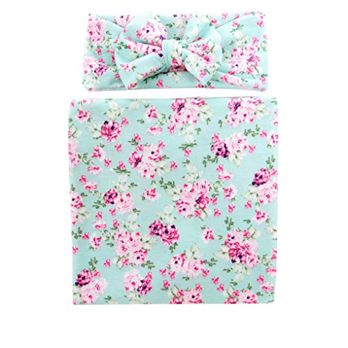 Ufraky Newborn Infant Baby Photography Prop Costume Floral Headband Swaddle Blanket Set