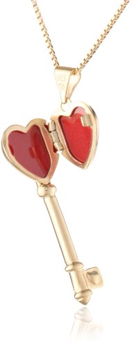 Grab the key to her heart with the gift of the 10k Gold Overlay Sterling Silver Cubic Zirconia Heart Key Pendant. Resting at the base of an 18-inch box chain is a classic key pendant shape, topped with a heart design. The heart is accented with a cluster of three round-shaped cubic zirconia stones that frame the round shape creating a two-tone effect that emphasizes shine. The pendant contains a hinge opening that allows it to become a locket.Feature