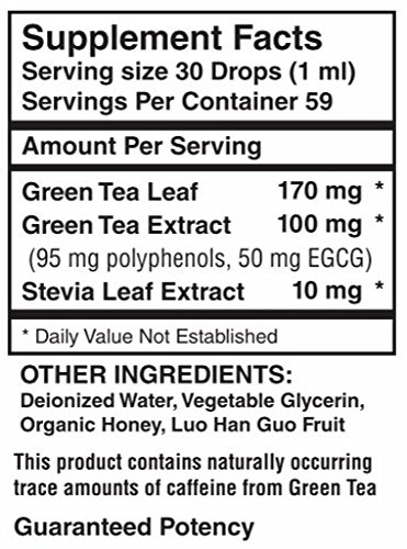 -. Feature : CONCENTRATED HIGH STRENGTH - Easy to take, Packed with highest level of antioxidants. Just mix with your favorite drink -hot - or cold to help you with your full detox - desired weight loss goals or stimulate immune system health. * / MAINTAIN YOUR ENERGY Naturally without high levels of caffeine in your body (contains less than 2% of caffeine). Boost metabolism, natural diet supplements to burn fat, increase overall health . * / HERBALIST FORMULATED, Made in USA- FDA registered organic certified facility. It's also a GMP and Kosher certified facility. Under strict quality standards and procedures. All herbs are organically grown, ethically wild harvested, or selectively imported. No genetically modified organisms (GMOs). / LIQUID VEGETARIAN FORMULA - Standardized to 90% polyphenols and 50% EGCG, the two most important components of green tea in maximizing antioxidants per serving. Free Radicals mortal enemy. Popular in Japan & China for thousands of years. * / FEEL BETTER GUARANTEE - We are confident that you are going to love our Liquid Green Tea Extract, but if for any reason you are not satisfied at any time, feel free to return bottle to us and take advantage of our 100% money back guarantee.