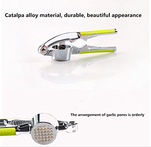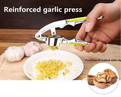 The perfect combination of fashion and quality. DXTXKJ will supply you a portable and convenient advanced garlic press, which can help you to peel garlic and ginger skin off easily, and mince, to cook feast quickly, and avoid the bad garlicky smells. It's almost unbreakable and will never rust, If you are a true Garlic Lover, you'll be using it constantly, washing it all the time, but you'll never have to worry about it. Hope it will be your actual cooking helper. 1.Material: High quality and environmental protection PP material and catalpa alloy exquisite, safe and reliable, is the necessary quality of home life. 2.Solid: Alloy material, exquisite appearance, durable, with mildew, corrosion, not easy to rust, can be sterilized by high temperature without deformation and so on. 3.One machine with two uses: ★: Pressure mashed garlic: Add garlic, garlic mashed garlic can be extruded thin under pressure, simple operation. ★: Clip Walnut: Durable alloy bullet, friction pressure teeth, easy to clamp walnuts. 4.Handle: Anti slip handle, edge grinding treatment, feel comfortable, easy to operate, as long as a little press, you can easily enjoy the healthy delicious. 5.Add delicious, fresh minced or sliced garlic to all you meals in seconds. Once you discover how quickly and easily you can produce you own fresh garlic mince you'll be adding to everything. Home made garlic bread, rich pasta sauce, mouthwatering hummus, oven roast veggies, mashed potatoes. The options are only limited by your imagination! High-End Garlic Press Use Tips Step 1: Put a clove of garlic in to the hopper (Better peel first) Step 2: Press the handles with one hand or two hands. Step 3: Use something to scrape off the minced garlic on the bottom 0