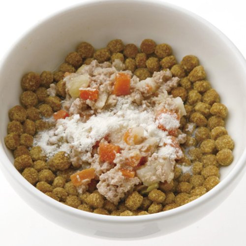 原材料:DHA、EPA、大豆蛋白、ビール酵母、レシチン、トマトリコピン、紅麹菌、リジン、フラクトオリゴ糖、乾燥全卵粉、緑茶カテキン、ビタミン(A、B1、B2、B6、B12、D3、E、K、ナイアシン、パンテント酸、コリン、葉酸、ビオチン)ミネラル(リン酸カルシウム、ナトリウム、亜鉛、鉄、銅、マンガン、カリウム、ヨウ素、コバルトセレン)プラス4種類の栄養素(大豆イソフラボン、タウリン、グルコサミン、コンドロイチン硫酸コラーゲン)