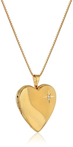 Necklace with open-and-close heart locket featuring diamond accent and textured ribbon separating brushed and polished finishes