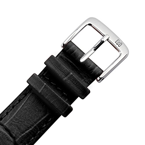 DESIGN - stilvolles Ersatzarmband aus Leder in der Farbe Schwarz | mit Naht, angepasst in gleicher Farbe des Uhrenbandes | Ersatzband für Uhren mit silberfarbigem Marburger Logo "M" | hergestellt aus feinem Rindsleder, hoher Tragekomfort durch erstklassige Verarbeitung | Ersatzband aus Leder in Alligatoroptik, passend für aktuelle Armbanduhren Modelle | geringe Farbabweichungen können aufgrund natürlicher Eigenschaften des Lederbandes oder wegen der Darstellung am Monitor auftreten