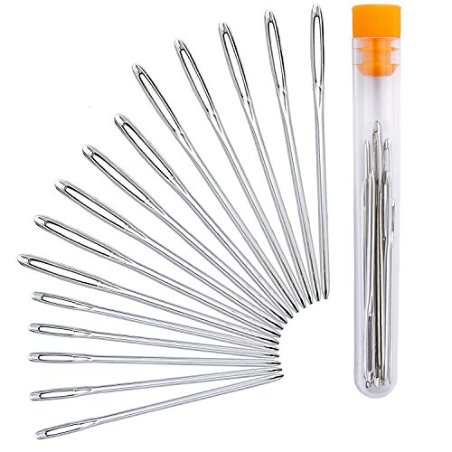 Bonayuanda 15 Pieces Large-eye Blunt Needles Steel Yarn Knitting Needles Sewing Needles